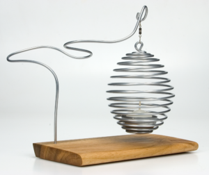 casulo prata base de madeira